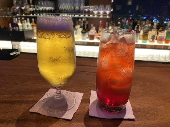 夕ご飯を食べに行く前に、バーに寄ってウェルカムドリンクのチケットを使いに行きました。20階にある「edeeアディ」というバーです。入り口は、天井までワインセラーになっています。隣に「Pierreピエール」というミシュラン1★」のフレンチレストランがあります。