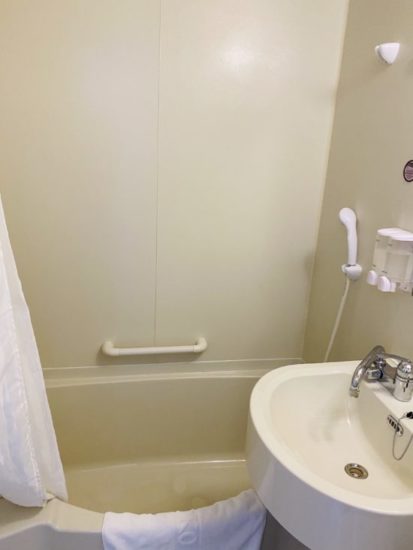 東横イン標準装備の、トイレ、洗面所、バスタブのユニットバスルームです。