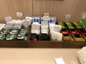客室の中は、新しいだけにトイレや照明器具なども最新バージョンで、トイレは近づくと自動で便座の蓋が開いて電気が付き、使用後、水も自動で流すので海外のお客さんがビックリするだろうなぁ、と思った。客室備え付けのパジャマは、上等のコットン、ワッフル生地のパジャマで肌触りが良い。家でも欲しいと思ったぐらいだった。